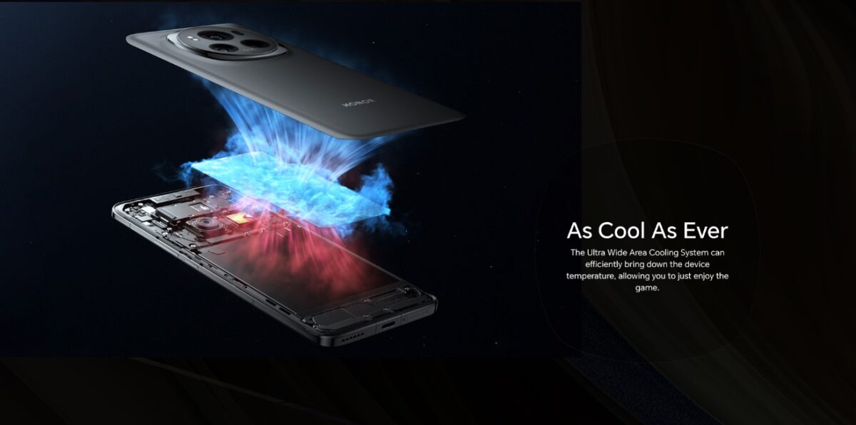 Afin de garantir la stabilité et la durabilité du téléphone lorsqu’il fonctionne à des charges élevées, le Honor Magic 6 Pro est également équipé d’un système de refroidissement intelligent ultra-large. Ce système est capable de dissiper rapidement la chaleur générée à l’intérieur du téléphone grâce à une disposition précise des tuyaux de chaleur et à des matériaux de dissipation de la chaleur très efficaces, garantissant que le téléphone ne surchauffera pas lors d’une utilisation prolongée. Cela permet non seulement d’améliorer la durée de vie du téléphone, mais aussi d’offrir aux utilisateurs une expérience plus confortable.